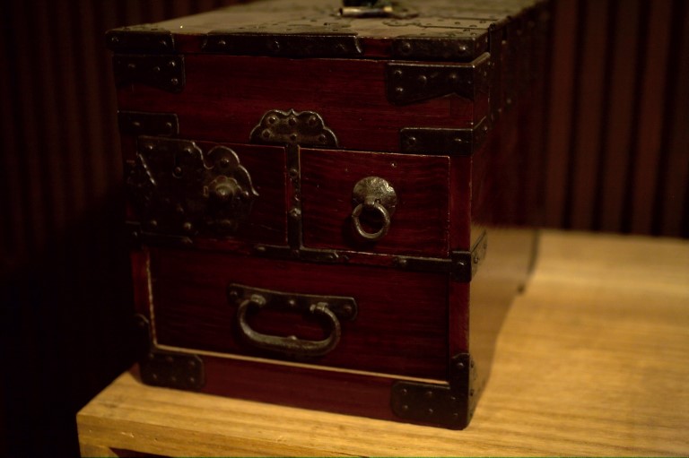 A laquered wooden box.