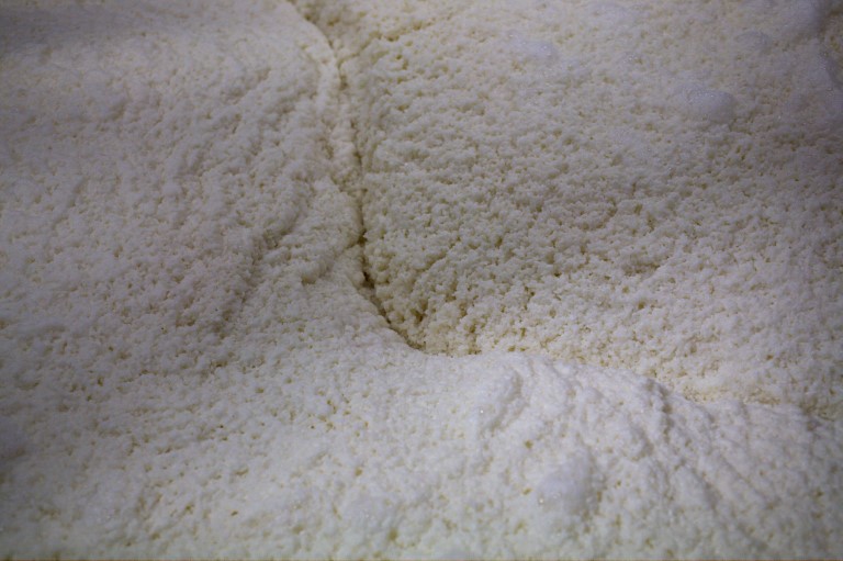 A closer look at the fermented rice after seven days. All of the rice that will be fermented is in the tank by this time.
