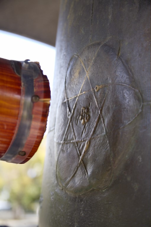 The wooden ringer meets the bell at a sign for the atom.