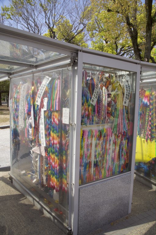 These glass cases surround the children's memorial. People from all over the world send origami cranes by the thousands even today.