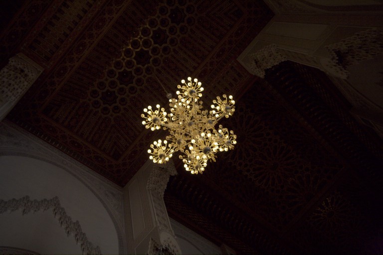 Here's a view of the chandeliers. They are attached to the ceiling on
